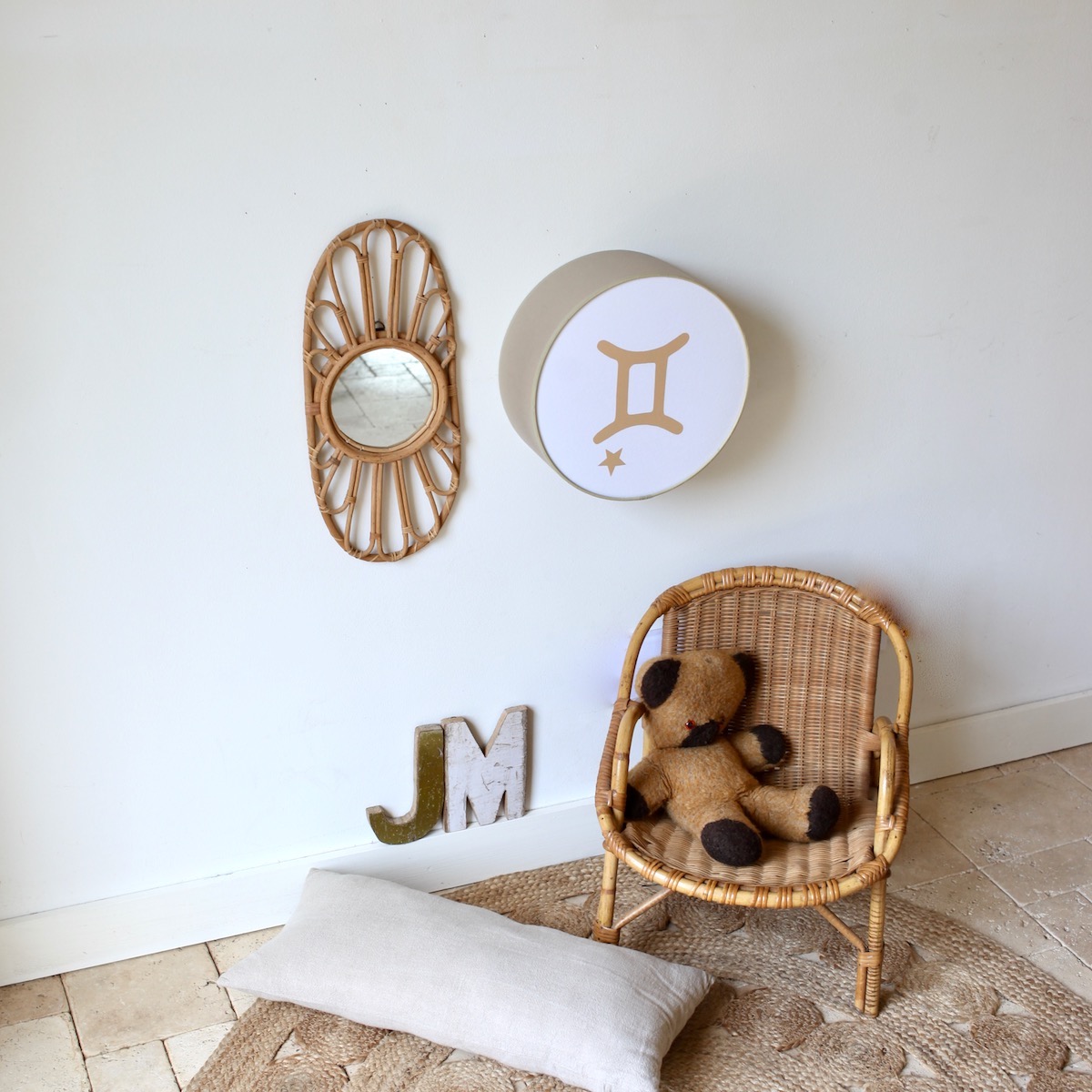 Déclinée en lampe murale garçon élégante , ou en lampe à poser fille beige , ce luminaire enfant au design sobre prendra place dans sa chambre en diffusant un halo de lumière délicat et apaisant. Associez l'astrologie à la déco d'une chambre d'enfant en y posant une lampe bébé personnalisée avec son signe astral , pour un effet graphique et magique.