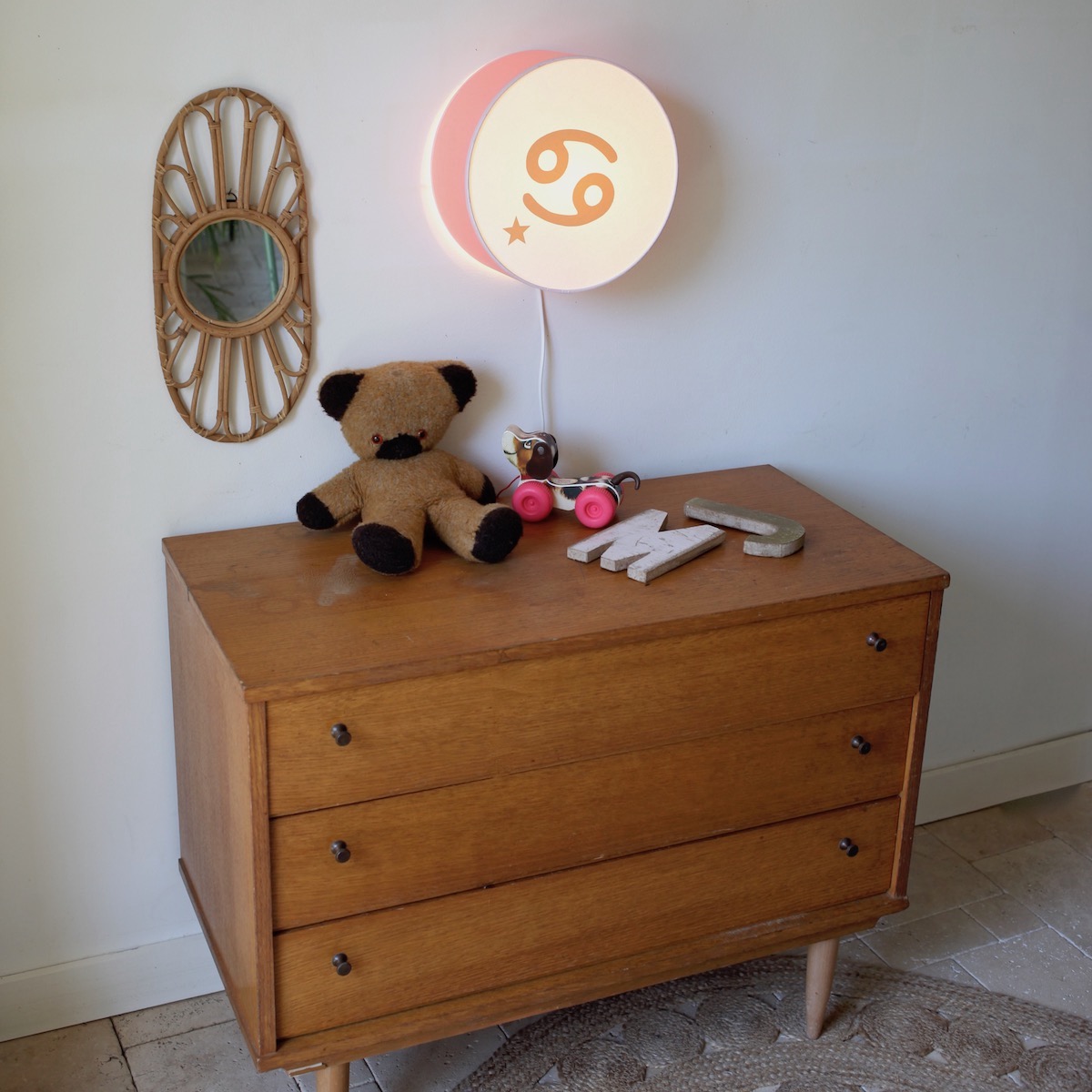 Une façon originale d'initier votre enfant à l' astrologie avec cette lampe bébé fille rose à l'effigie de son signe du zodiaque . C'est avec beaucoup de délicatesse que ce luminaire enfant design s'intégrera dans une chambre contemporaine ou vintage où son halo lumineux se diffusera dans son espace. Une lampe à poser fille rose personnalisée de son symbole astrologique stylisé décliné dans un beige doux et chaud.