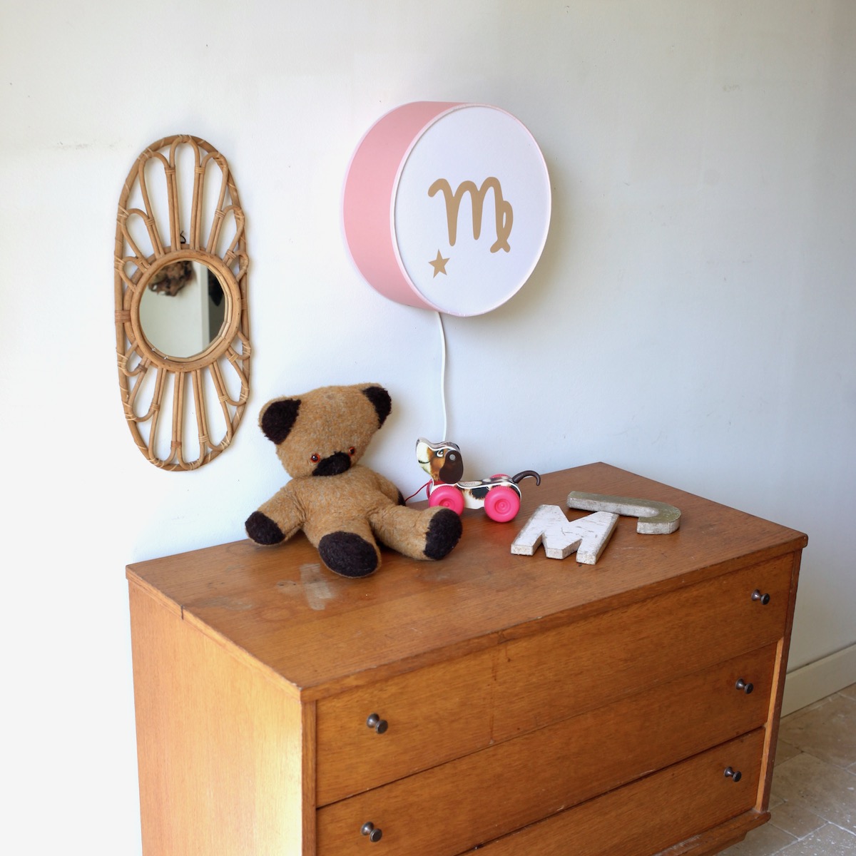 Une façon originale d'initier votre enfant à l' astrologie avec cette lampe bébé fille rose à l'effigie de son signe du zodiaque . C'est avec beaucoup de délicatesse que ce luminaire enfant design s'intégrera dans une chambre contemporaine ou vintage où son halo lumineux se diffusera dans son espace. Une lampe à poser fille rose personnalisée de son symbole astrologique stylisé décliné dans un beige doux et chaud.